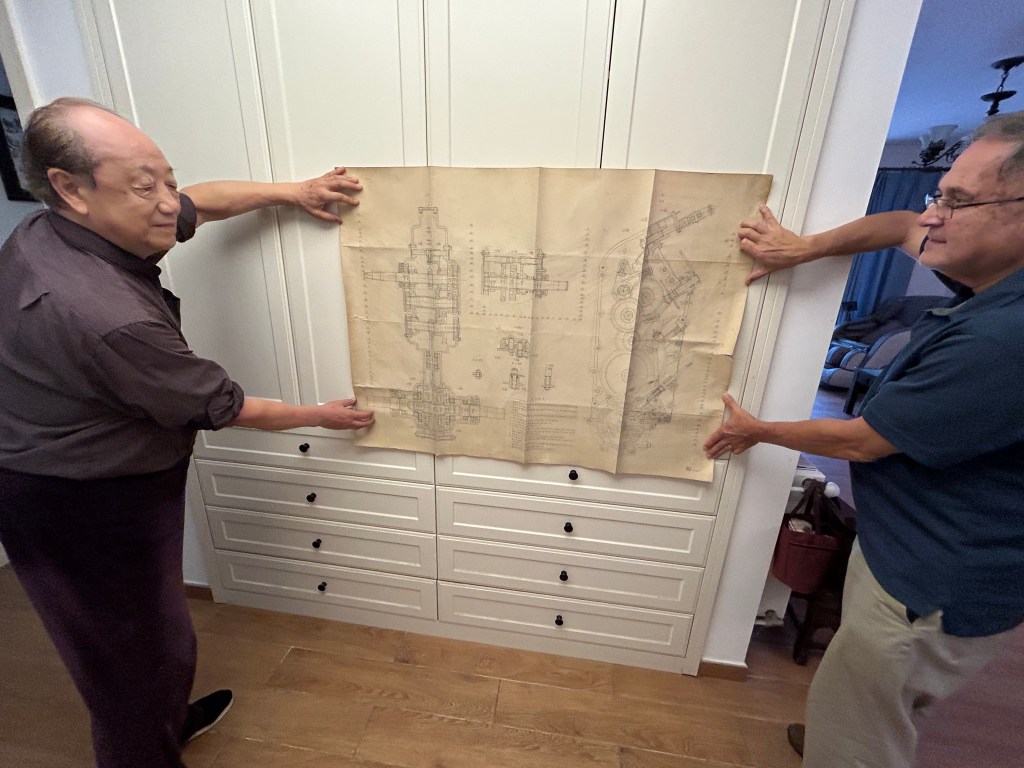 Not to be outdone, Jie’s father took out a drawing from his days as a mechanical engineer. He was the team leader of the first motorized tractor ever built in China—in 1965. The country had been importing motorized equipment from Russia prior to that. His team got hold of a Japanese tractor, took it apart, examined everything—then replaced certain parts with those that could be made in China. When they got it working, they took it around to different rural areas in China to see how functional it was—then modified it to meet regional needs. The drawing he showed me was the design his team made of that first tractor.