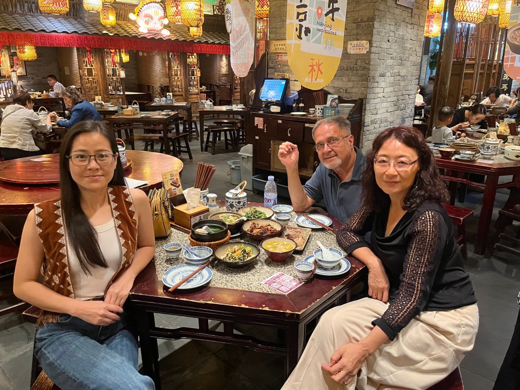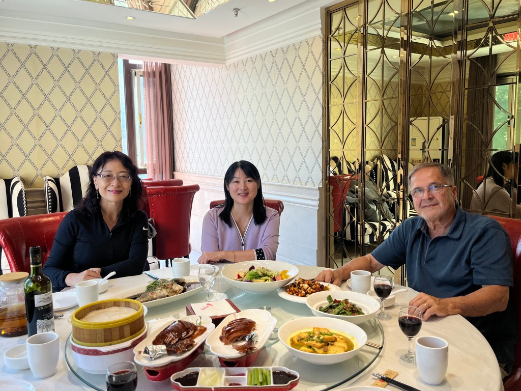After catching up with Margaret, we were met by another great friend from a decade ago—Susu. Susu spent a year at the U of I while she was getting her doctorate in civil engineering. She went back to China and became a team leader for the building of Beijing’s largest (Daxing) airport—and a media spokesperson for the publicity when it opened in 2019. Susu is one of the most delightful and funny persons I have ever met. And we had a grand time remembering stories from her years with us in Urbana.