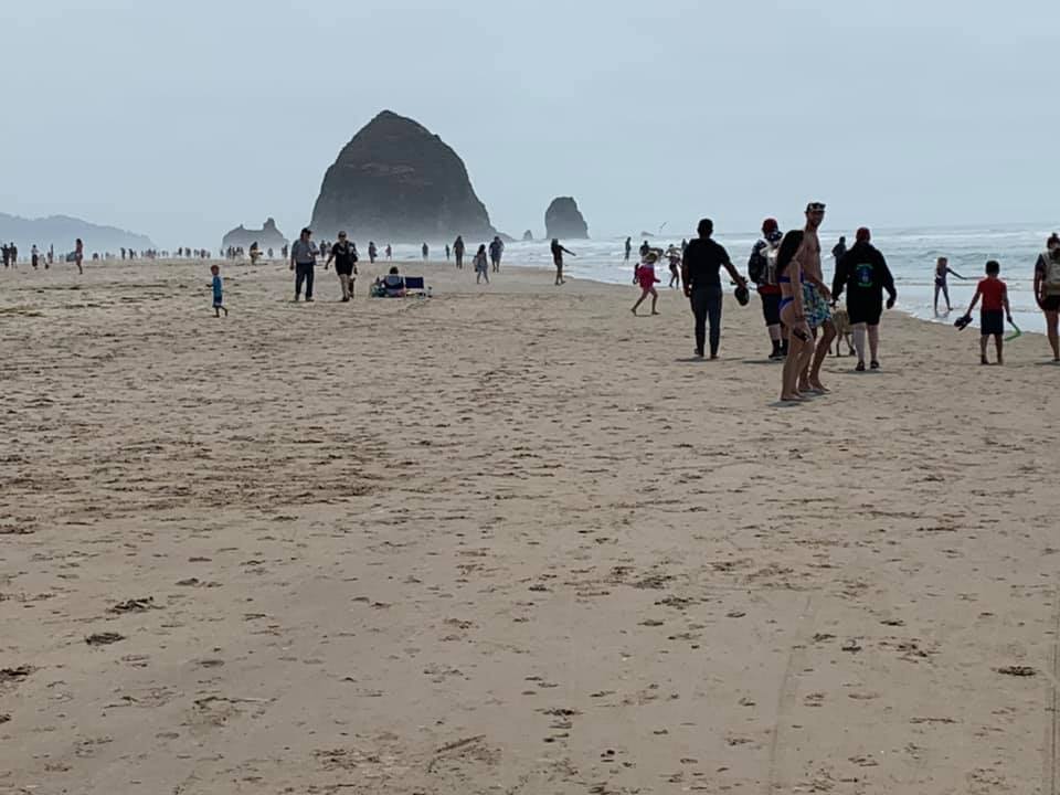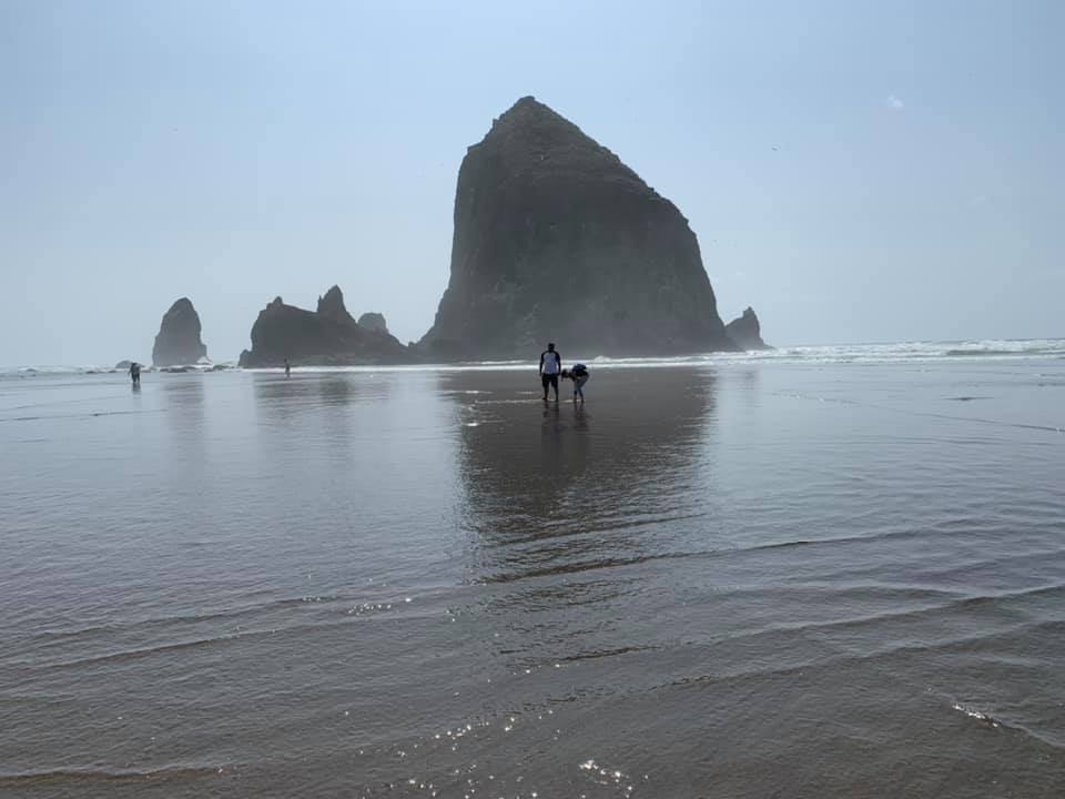 August 17: Today is the last day before Jie flies home. I will continue to post narrative and photos until my road trip is completed…next Monday. We decided to head back to the ocean today to Cannon Beach, Oregon. Jie shopped and I busied myself with beach walking and finishing an excellent novel, “God Spare the Girls.” The first recorded humans in this place were folks from the Tillamook tribe. William Clark, as in Lewis and Clark, meandered down here in 1805 because he heard rumors of a beached whale. He bartered with the Native Americans to obtain 300 pounds of the blubber. Looking out upon the ocean, he remarked, “the grandest and most pleasing prospects my eyes have ever seen. In 2013, National Geographic magazine called Cannon Beach one of the 100 most beautiful places in the world. It is well known for Haystack Rock, which juts more than 200 feet up out of the Pacific ocean. I have a photo of it below. Clark called the place, “Ecoli” which is the Chinook word for “whale.” The name still perseveres in the area, appearing as part of the name of several businesses. Of course, this is a problem for the restaurant by that name, as it made me wonder whether it was safe to eat the clam chowder. In 1846 there was a shipwreck and a cannon on board the ship ended up beached in the area. Evidently a cannon was more impressive than a beached whale, and so the town changed its name to Cannon Beach. Enjoy today’s photos.