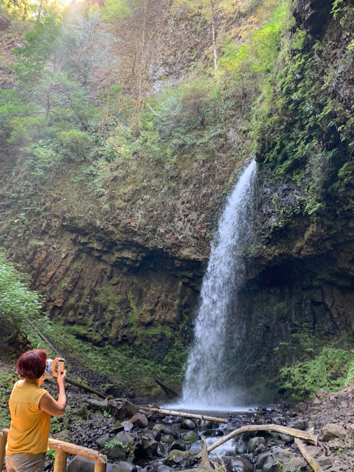 Today’s jaunt was up the Columbia River to see the gorge and the waterfalls…and to do some hiking in the mountains. We travelled along the picturesque old US highway 30. Back in Portland tonight. The hike took us up above the Latourell Falls. First photos are from there. We also stopped at the Horsetail Falls and enjoyed watching some children splash around in the pool below it. Later photos are from there.