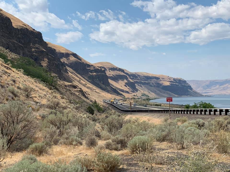 August 9: Made it to Seattle today, 295 miles drive. Washington state, to put it simplistically, is desert in the east and mountains in the west. The mountains end abruptly as you approach the Pacific sea coast. Photos from today show both the desert and the mountains. There is also a photo overlooking the Columbia River. This is my first time back in Washington state in 24 years. Jie was due in at 10 pm (midnight central time) but her plane has been delayed and she is now scheduled to arrive at 12:15 am. pacific time. Hope there are no more delays. Meanwhile I am on my good behavior as I prepare to give her an accounting for my six days on the road. In other words, she will check me over to see whether I’ve overeaten while I’ve been away. (I haven’t ).